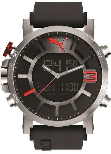 Zegarek męski PUMA-PU911371001 marki Puma to dobra pozycja dla ludzi ceniących sobie dbałość o szczegóły oraz sprawne działanie mechanizmów. Koperta szeroka jest na 54 mm oraz ma grubość 15 mm.