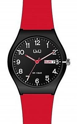 Kwarcowa bateria zamontowana w modelu A212-009 zapewnia zasilanie jego mechanizmu. Pasek jest w kolorze czerwonym zrobiony jest z wysokiej jakości tworzywa sztucznego.
