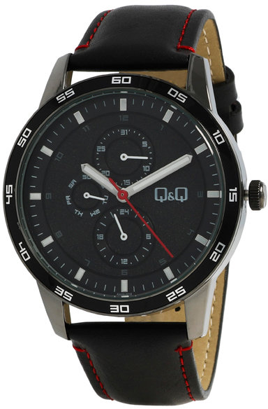 Męski zegarek Q&Q AA38-512 to zegarek, który dzięki swemu wzornictwu zawsze będzie prezentował się dobrze. Charakterystyczny wygląd czasomierza uzyskano również dzięki tarczy w kolorze czarnym. Godzina zaprezentowana jest w sposób analogowy co intuicyjnie pozwala ją odczytać. Koperta w odcieniach koloru czarnego szeroka jest na 44 mm oraz ma grubość 11 mm - w kształcie okrągłym.