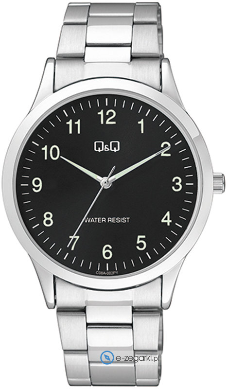 Zegarek C08A-002P zasilany jest za pomocą baterii kwarcowej. Wytrzymała bransoleta srebrnego koloru wytworzona ze stali nierdzewnej zapewnia powyższoną jakość oraz trwałość.