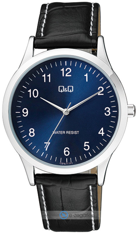 Zegarek męski C08A-012P marki Q&Q to dobra pozycja dla ludzi ceniących sobie dbałość o szczegóły jak również bezawaryjne zachowanie mechanizmów. Stylu nadaje wysokiej jakości cyferblat w kolorze niebieskim. Zegarek ten prezentuje godzinę w formacie analogowym dzięki czemu odczyt jest intuicyjny. Koperta w odcieniach koloru srebrnego szeroka jest na 40 mm oraz ma grubość 8 mm - charakteryzuje się okrągłym kształtem.