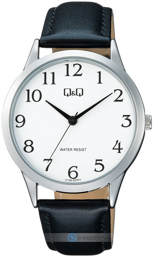 Zegarek C10A-057P posiada kwarcowy mechanizm zasilany klasyczną baterią. Pasek koloru czarnego wykonany jest z wysokiej klasy skóry gwarantującej trwałość i wygodę użytkowania.