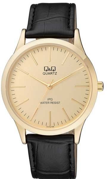 Model C212-100 marki Q&Q to elegancki zegarek naręczny męski, który wyposażono w pomysłowe rozwiązania oraz funkcje. Styl zapewnia wysokiej klasy cyferblat w kolorze beżowym. Aktualna godzina pokazywana jest w sposób analogowy co intuicyjnie pozwala ją odczytać. Koperta w odcieniach koloru złotego o grubości 63 mm.