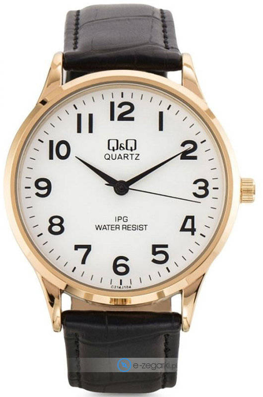Zegarek męski C214-104 marki Q&Q to dobre połączenie funkcjonalności i modnego designu. Charakteru dodaje wysokiej klasy cyferblat w kolorze białym. Zegarek ten prezentuje godzinę w formacie analogowym dzięki temu odczyt jest intuicyjny. Koperta jest w kolorze złotym szeroka jest na 40 mm oraz ma grubość 7 mm - w kształcie okrągłym.