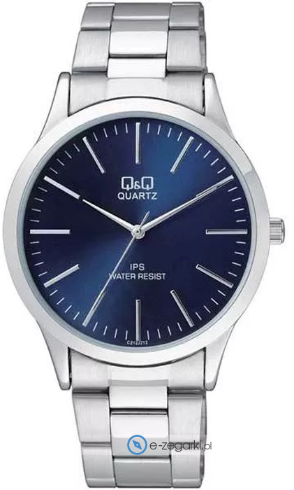 Zegarek męski C214-212 marki Q&Q to ciekawa pozycja dla osób ceniących sobie dbałość o detale oraz bezawaryjne funkcjonowanie mechanizmów. Charakter zapewnia wysokiej klasy cyferblat w kolorze niebieskim. Godzina zaprezentowana jest w sposób analogowy co intuicyjnie pozwala ją odczytać. Koperta jest pokryta kolorem srebrnym szeroka jest na 40 mm oraz ma grubość 8 mm.
