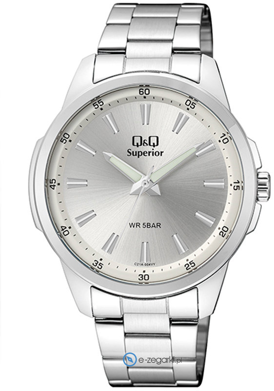 Zegarek C21A-004V posiada kwarcowy mechanizm zasilany standardową baterią. Wytrzymała bransoleta w tonacji koloru srebrnego zrobiona ze stali nierdzewnej gwarantuje dużo lepszą jakość oraz trwałość.
