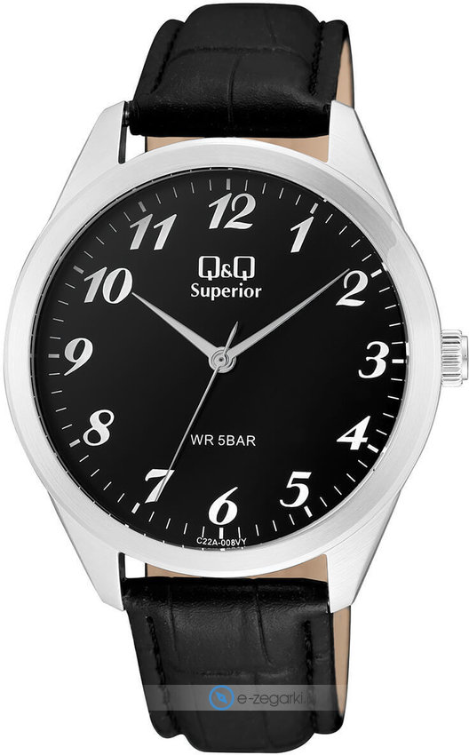 Zegarek C22A-008V zasilany jest za pomocą baterii kwarcowej. Pasek jest w kolorze czarnym wykonany jest z wysokiej jakości skóry gwarantującej trwałość i wygodę użytkowania.