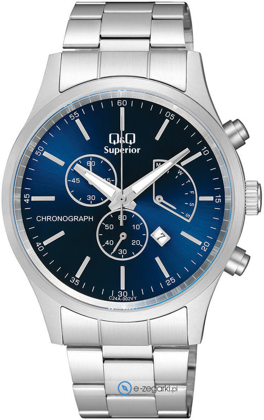 Zegarek C24A-002V posiada kwarcowy mechanizm zasilany klasyczną baterią. Wytrzymała bransoleta jest w kolorze srebrnym wykonana ze stali nierdzewnej zapewnia dużo lepszą jakość oraz trwałość.