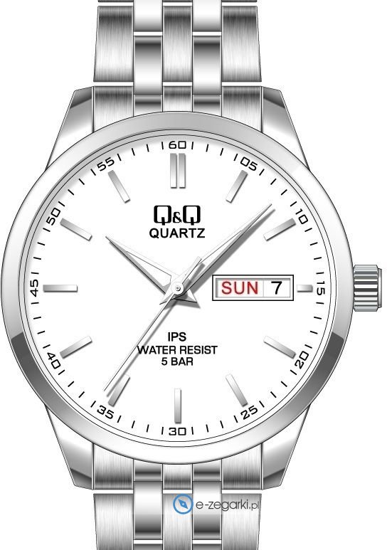 Model CD02-201 marki Q&Q to gustowny zegarek naręczny męski, który wyposażono w ciekawe rozwiązania oraz funkcje. Niestereotypowy wygląd czasomierza uzyskano m.in. poprzez tarczę w kolorze białym. Zaprezentowana metodą analogową bieżąca godzina jest czytelna i łatwa do sprawdzenia. Koperta została ozdobiona kolorem srebrnym o grubości 82 mm.