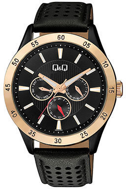 Zegarek męski CE02-542 marki Q&Q to dobre połączenie funkcjonalności oraz modnego wzornictwa. Charakter zapewnia wysokiej jakości tarcza w kolorze czarnym. Zegarek ten prezentuje godzinę w formacie analogowym dzięki temu odczyt jest bezproblemowy. Koperta jest w kolorze czarnym szeroka jest na 44 mm oraz ma grubość 11.25 mm - wyróżnia się okrągłym kształtem.