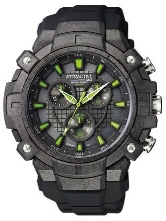 Zegarek ma chronograf czyli stoper manualny umożliwiający dokładny pomiar czasu.