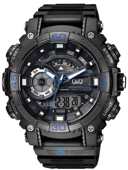 Męski zegarek Q&Q GW87-003 to zegarek, który dzięki swemu wzornictwu zawsze będzie prezentował się dobrze. Tarcza zegarka w kolorze czarnym. Zegarek ten prezentuje godzinę w formacie analogowo - cyfrowym dzięki temu odczyt jest intuicyjny. Koperta jest pokryta kolorem czarnym szeroka jest na 50 mm oraz ma grubość 20 mm.