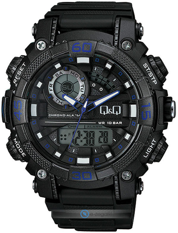 Męski zegarek Q&Q GW87-012 to zegarek, który dzięki swemu wzornictwu zawsze będzie prezentował się dobrze. Styl zapewnia wysokiej klasy cyferblat w kolorze czarnym. Aktualna godzina przedstawiona jest w sposób analogowo - cyfrowy co niezmiernie łatwo pozwala ją odczytać. Koperta jest w kolorze czarnym szeroka jest na 52 mm oraz ma grubość 18.5 mm - w kształcie okrągłym.