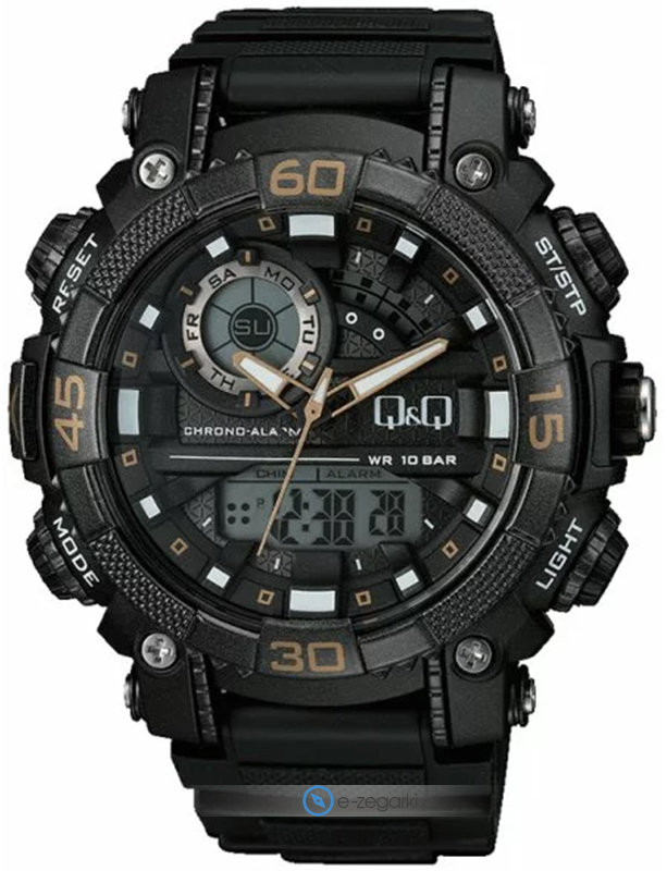 Męski zegarek Q&Q GW87-013 to zegarek, który dzięki swemu wzornictwu zawsze będzie prezentował się dobrze. Nieschematyczny wygląd czasomierza osiągnięto również dzięki tarczy w kolorze czarnym. Pokazana metodą analogowo - cyfrową aktualna godzina jest czytelna i prosta do sprawdzenia. Koperta została ozdobiona kolorem czarnym szeroka jest na 52 mm oraz ma grubość 18.5 mm - ma okrągły kształt.
