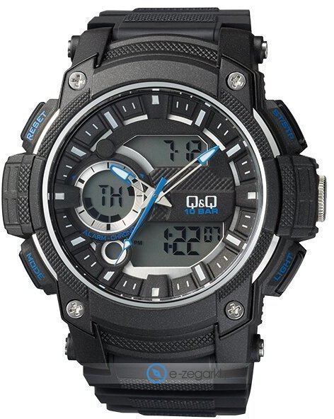 Męski zegarek Q&Q GW90-003 to zegarek, który dzięki swemu wzornictwu zawsze będzie prezentował się dobrze. Nieschematyczny wygląd czasomierza uzyskano m.in. poprzez cyferblat w kolorze czarnym. Zegarek ten pokazuje godzinę w formacie analogowo - cyfrowym dzięki temu odczyt jest bardzo łatwy. Koperta jest w kolorze czarnym szeroka jest na 53 mm oraz ma grubość 20 mm - w kształcie okrągłym.