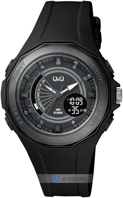 Zegarek męski GW91-002 marki Q&Q to ciekawa propozycja dla ludzi ceniących sobie dbałość o detale jak również bezproblemowe działanie mechanizmów. Ciekawy wygląd zegarka uzyskano m.in. poprzez tarczę w kolorze czarnym. Zaprezentowana metodą analogowo - cyfrową bieżąca godzina jest czytelna i prosta do sprawdzenia. Koperta w odcieniach koloru czarnego szeroka jest na 45 mm oraz ma grubość 16.15 mm - w kształcie okrągłym.