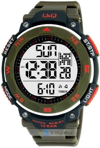 Kwarcowa bateria umieszczona w modelu M124-003 zapewnia zasilanie jego mechanizmu. Pasek zielonego koloru wykonany jest z wysokiej jakości tworzywa sztucznego.