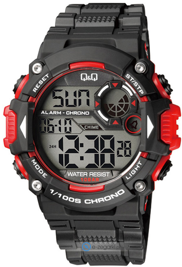 Model M146-003 marki Q&Q to gustowny zegarek naręczny męski, który jest wyposażony w ciekawe rozwiązania oraz funkcje. Godzina zaprezentowana jest w sposób cyfrowy co intuicyjnie pozwala ją odczytać. Koperta została pokryta kolorem czarnym szeroka jest na 50 mm oraz ma grubość 16.00 mm - w kształcie okrągłym.