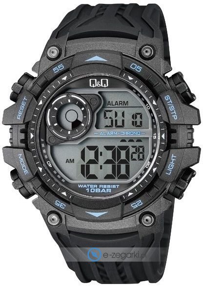 Model M157-003 marki Q&Q to elegancki zegarek naręczny męski, który wyposażono w pomysłowe rozwiązania i funkcje. Aktualna godzina zaprezentowana jest w sposób cyfrowy co intuicyjnie pozwala ją odczytać. Koperta została ozdobiona kolorem czarnym o grubości 16 mm.