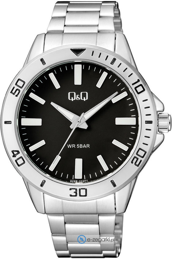 Kwarcowa bateria zamontowana w zegarku Q28B-002P zapewnia zasilanie jego mechanizmu. Bransoleta srebrnego koloru zrobiona jest z wysokiej jakości stopu metali na bazie mosiądzu.