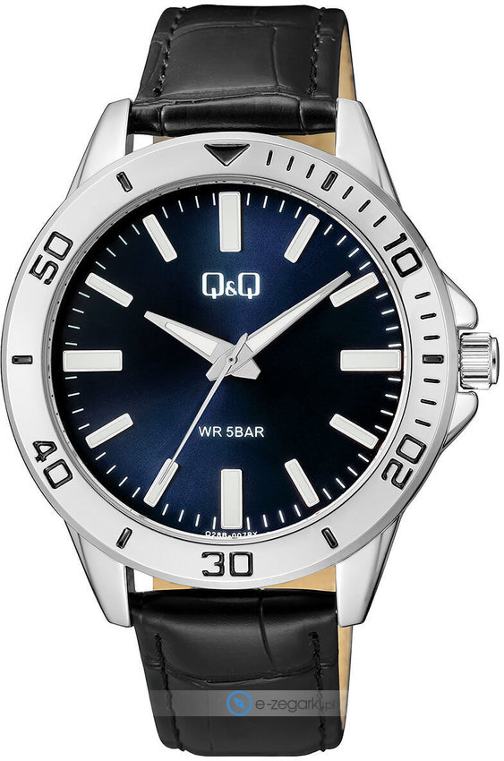 Model Q28B-007P marki Q&Q to gustowny zegarek naręczny męski, który posiada ciekawe rozwiązania oraz funkcje. Charakterystyczną konstrukcję zegarka osiągnięto dzięki tarczy w kolorze niebieskim. Zegarek ten prezentuje godzinę w formacie analogowym dzięki temu odczyt jest bezproblemowy. Koperta jest pokryta kolorem srebrnym szeroka jest na 44 mm oraz ma grubość 12 mm - posiada okrągły kształt.