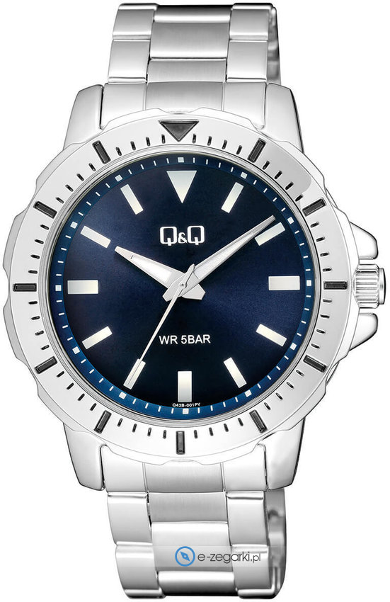 Model Q43B-001P marki Q&Q to stylowy zegarek naręczny męski, który wyposażono w pomysłowe rozwiązania oraz funkcje. Charakter zapewnia wysokiej klasy tarcza w kolorze niebieskim. Zegarek ten pokazuje aktualny czas w formacie analogowym dzięki temu odczyt jest intuicyjny. Koperta w odcieniach koloru srebrnego szeroka jest na 43 mm oraz ma grubość 11 mm - posiada okrągły kształt.