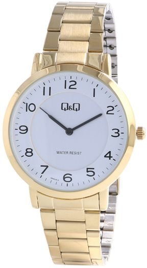 Model Q944-813 marki Q&Q to gustowny zegarek naręczny męski, który wyposażono w pomysłowe rozwiązania i funkcje. Nieschematyczny wygląd czasomierza uzyskano także dzięki tarczy w kolorze białym. Godzina pokazywana jest w sposób analogowy co bez trudu pozwala ją odczytać. Koperta w odcieniach koloru złotego szeroka jest na 39 mm - w kształcie okrągłym.