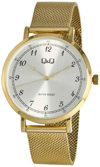 Zegarek męski QA20-084 marki Q&Q to dobra propozycja dla ludzi ceniących sobie dbałość o detale a także bezawaryjne działanie mechanizmów. Atrakcyjną budowę czasomierza uzyskano dzięki tarczy w kolorze srebrnym. Zaprezentowana metodą analogową bieżąca godzina jest czytelna i łatwa do odczytania. Koperta jest w kolorze złotym szeroka jest na 39 mm oraz ma grubość 8.50 mm - ma okrągły kształt.