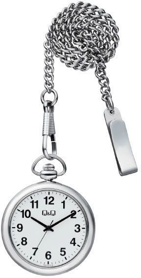 Zegarek męski QA70-214 - kieszonkowy marki Q&Q to idealne połączenie funkcjonalności oraz modnego designu. Tarcza zegarka jest w kolorze białym. Godzina zaprezentowana jest w sposób analogowy co intuicyjnie pozwala ją odczytać. Koperta jest pokryta kolorem srebrnym szeroka jest na 40 mm oraz ma grubość 8 mm - w kształcie okrągłym.