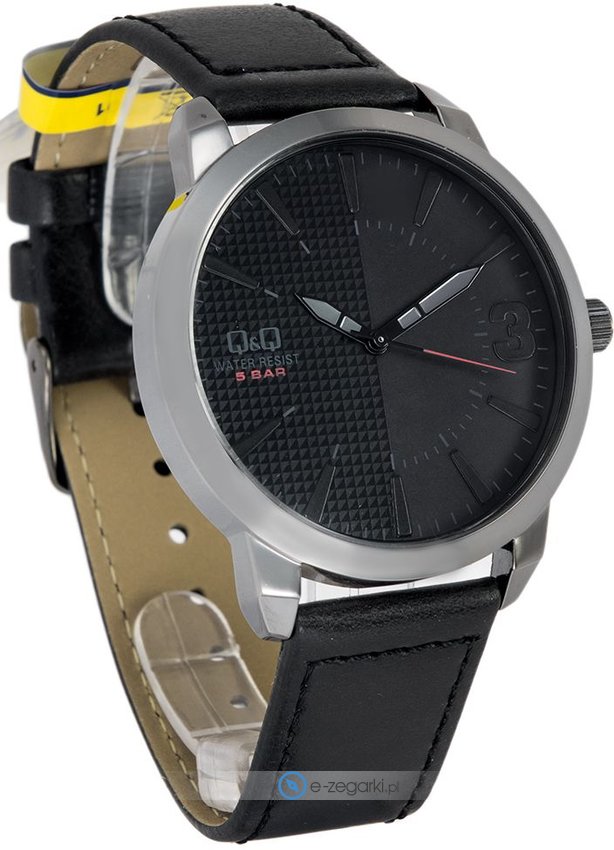 Zegarek QA98-502 posiada kwarcowy mechanizm zasilany klasyczną baterią. Pasek jest w kolorze czarnym wykonany jest z wysokiej klasy skóry zapewniającej trwałość i komfort użytkowania.