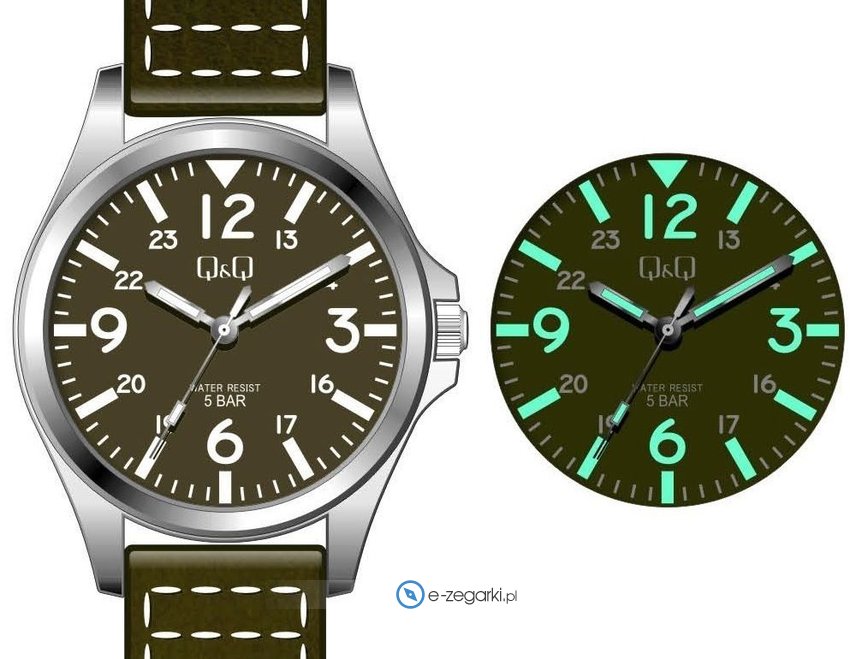 Kwarcowa bateria umieszczona w modelu QB12-345 zapewnia zasilanie jego mechanizmu. Pasek w tonacji koloru zielonego wykonany jest z wysokiej jakości skóry gwarantującej trwałość i wygodę noszenia.