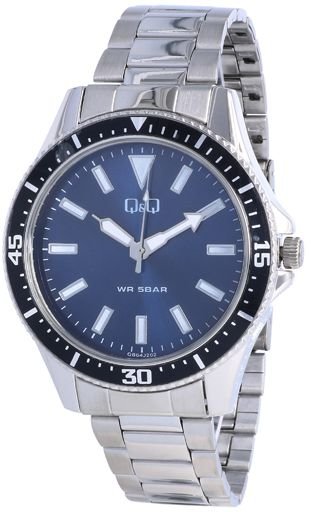Męski zegarek Q&Q QB64-202 to zegarek, który dzięki swemu wzornictwu zawsze będzie prezentował się dobrze. Niebanalny wygląd zegarka osiągnięto również dzięki tarczy w kolorze niebieskim. Zaprezentowana metodą analogową bieżąca godzina jest czytelna i łatwa do odczytania. Koperta w barwach koloru srebrnego szeroka jest na 43 mm oraz ma grubość 11.5 mm - w kształcie okrągłym.