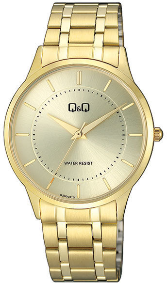 Kwarcowa bateria zamontowana w zegarku QZ60-010 zapewnia zasilanie jego mechanizmu. Wytrzymała bransoleta jest w kolorze złotym zrobiona ze stali szlachetnej gwarantuje wysoką jakość i trwałość.