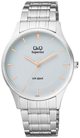 Model S328-201 marki Q&Q to gustowny zegarek naręczny męski, który jest wyposażony w pomysłowe rozwiązania oraz funkcje. Nieschematyczny wygląd czasomierza osiągnięto m.in. poprzez tarczę w kolorze białym. Aktualna godzina pokazywana jest w sposób analogowy co niezmiernie łatwo pozwala ją odczytać. Koperta w barwach koloru srebrnego - w kształcie okrągłym.