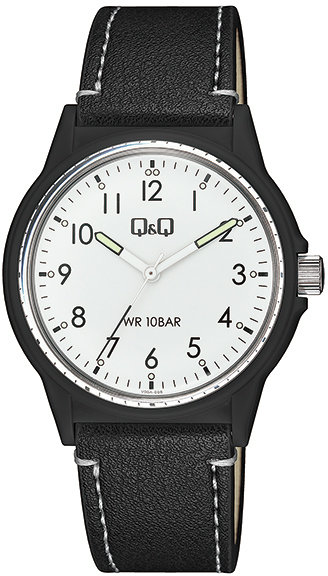 Zegarek męski V00A-08V marki Q&Q to ciekawa pozycja dla osób ceniących sobie dbałość o szczegóły jak również bezproblemowe działanie mechanizmów. Atrakcyjny wygląd zegarka osiągnięto również dzięki tarczy w kolorze białym. Zegarek ten prezentuje godzinę w formacie analogowym dzięki czemu odczyt jest bezproblemowy. Koperta w odcieniach koloru czarnego szeroka jest na 39 mm oraz ma grubość 10.9 mm - cechuje się okrągłym kształtem.