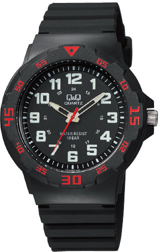 Model VR18-006 marki Q&Q to gustowny zegarek naręczny męski, który wyposażono w pomysłowe rozwiązania i funkcje. Wysokiej trwałości tarczę zegarka pokryto czarnym kolorem. Zaprezentowana metodą analogową bieżąca godzina jest czytelna i szybka do odczytania. Koperta jest w kolorze czarnym szeroka jest na 43 mm oraz ma grubość 10.50 mm - posiada okrągły kształt.