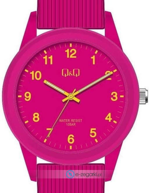 Kwarcowa bateria umieszczona w modelu VS12-009 zapewnia zasilanie jego mechanizmu. Pasek różowego koloru wykonany jest z wysokiej jakości tworzywa sztucznego.