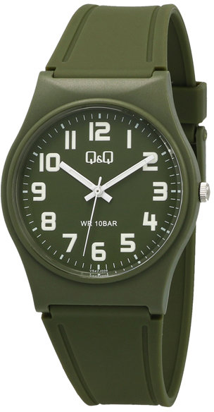Męski zegarek Q&Q VS42-009 to zegarek, który dzięki swemu wzornictwu zawsze będzie prezentował się dobrze. Ciekawą stylistykę czasomierza osiągnięto z pomocą tarczy w kolorze zielonym. Godzina prezentowana jest w sposób analogowy co bez trudu pozwala ją odczytać. Koperta w odcieniach koloru zielonego szeroka jest na 40 mm oraz ma grubość 8.95 mm - w kształcie okrągłym.