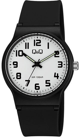 Kwarcowa bateria zamontowana w zegarku VS50-009 zapewnia zasilanie jego mechanizmu. Pasek w tonacji koloru czarnego zrobiony jest z wysokiej jakości tworzywa sztucznego.
