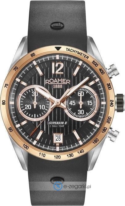 Model 510902 39 54 05 marki Roamer to elegancki zegarek naręczny męski, który jest wyposażony w ciekawe rozwiązania oraz funkcje. Atrakcyjny wygląd czasomierza uzyskano dzięki tarczy w kolorze czarnym. Koperta w odcieniach koloru stalowego szeroka jest na 43 mm - wyróżnia się okrągłym kształtem.