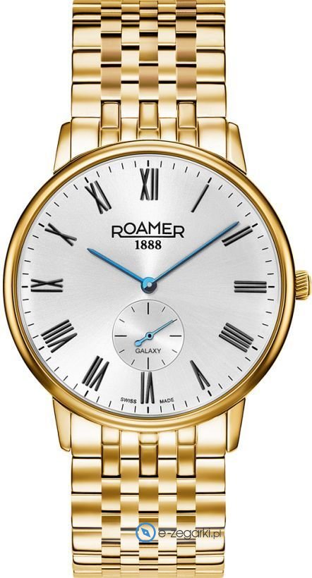 Model 620710 48 15 50 marki Roamer to stylowy zegarek naręczny męski, który wyposażono w pomysłowe rozwiązania i funkcje. Tarcza zegarka jest w kolorze białym. Zaprezentowana metodą analogową bieżąca godzina jest czytelna i szybka do sprawdzenia. Koperta w odcieniach koloru złotego szeroka jest na 41 mm - cechuje się okrągłym kształtem.