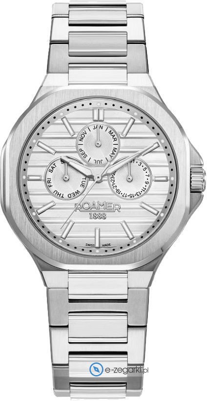 Męski zegarek Roamer 995989 41 25 20 to zegarek, który dzięki swemu wzornictwu zawsze będzie prezentował się dobrze. Niebanalny wygląd zegarka osiągnięto także dzięki tarczy w kolorze srebrnym. Zaprezentowana metodą analogową aktualna godzina jest czytelna i łatwa do sprawdzenia. Koperta została ozdobiona kolorem srebrnym szeroka jest na 42 mm - posiada okrągły kształt.