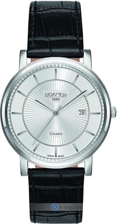Zegarek męski 709856 41 17 07 marki Roamer to idealne połączenie funkcjonalności a także modnego wzornictwa. Model ten występuje w kolekcji Classic Line Gents. Wysokiej trwałości cyferblat zegarka pokryto szarym kolorem. Koperta jest w kolorze stalowym szeroka jest na 40 mm oraz ma grubość 7 mm - wyróżnia się okrągłym kształtem.