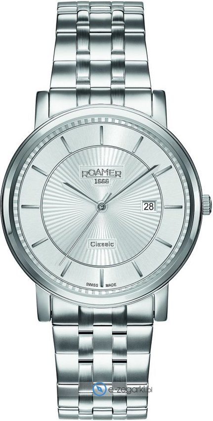 Zegarek męski 709856 41 17 70 marki Roamer z kolekcji Classic Line Gents. Charakter zapewnia wysokiej klasy cyferblat w kolorze szarym. Koperta w odcieniach koloru stalowego szeroka jest na 40 mm oraz ma grubość 7 mm - wyróżnia się okrągłym kształtem.
