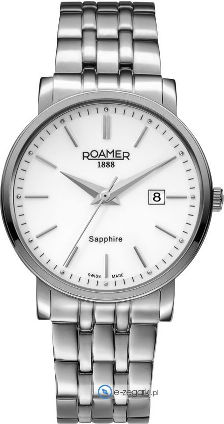 Zegarek 709856 41 25 70 marki Roamer to gustowny zegarek naręczny męski, który jest wyposażony w ciekawe rozwiązania oraz funkcje. Model ten pochodzi z serii Roamer Classic Line Gents. Ciekawą konstrukcję zegarka uzyskano dzięki tarczy w kolorze białym. Koperta w odcieniach koloru stalowego szeroka jest na 40 mm - w kształcie okrągłym.