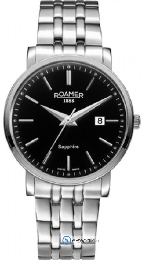 Zegarek 709856 41 55 70 marki Roamer to stylowy zegarek naręczny męski, który posiada ciekawe rozwiązania oraz funkcje. Model ten zalicza się do kolekcji Classic Line Gents. Ciekawy wygląd czasomierza osiągnięto poprzez cyferblat w kolorze czarnym. Koperta w odcieniach koloru stalowego szeroka jest na 40 mm oraz ma grubość 7 mm - charakteryzuje się okrągłym kształtem.