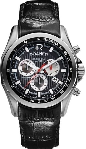 Zegarek 220837 41 55 02 marki Roamer to elegancki zegarek naręczny męski, który wyposażono w pomysłowe rozwiązania oraz funkcje. Model ten występuje w kolekcji Rockshell Mark III Chrono. Tarcza zegarka w kolorze czarnym. Koperta jest w kolorze stalowym szeroka jest na 44 mm oraz ma grubość 12 mm - charakteryzuje się okrągłym kształtem.