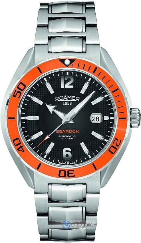 Zegarek 211633 41 04 20 marki Roamer to stylowy zegarek naręczny męski, który wyposażono w pomysłowe rozwiązania i funkcje. Model ten zalicza się do kolekcji Searock Pro. Nieschematyczny wygląd czasomierza osiągnięto dzięki tarczy w kolorze czarnym. Koperta jest pokryta kolorem stalowym o grubości 9 mm - w kształcie okrągłym.