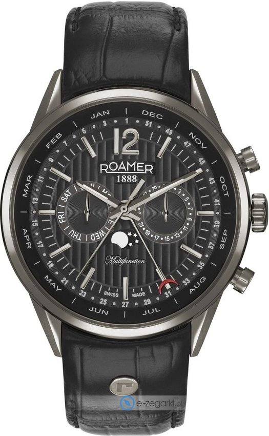 Zegarek męski 508822 43 54 05 marki Roamer to dobre połączenie funkcjonalności i modnego wzornictwa. Model ten jest z kolekcji Superior Business Multifunctio. Nieschematyczny wygląd czasomierza osiągnięto poprzez cyferblat w kolorze czarnym. Koperta szeroka jest na 43 mm - charakteryzuje się okrągłym kształtem.