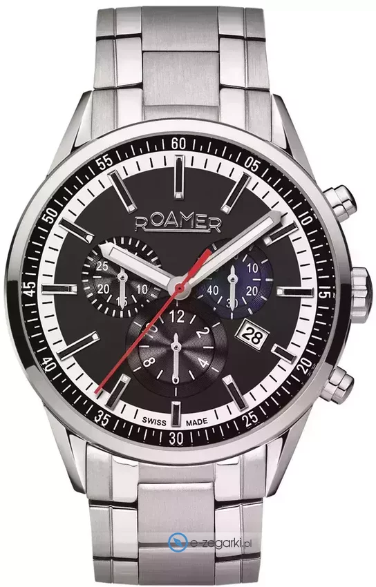 Zegarek męski 508837 41 45 50 marki Roamer to stylowe połączenie funkcjonalności i modnego designu. Model ten w gamie innych zegarków tego producenta występuje w kolekcji Roamer Superior Chrono. Niebanalny wygląd czasomierza osiągnięto także dzięki tarczy w kolorze czarnym. Aktualna godzina pokazywana jest w sposób analogowy co intuicyjnie pozwala ją odczytać. Koperta w barwach koloru stalowego szeroka jest na 44 mm oraz ma grubość 11 mm - w kształcie okrągłym.
